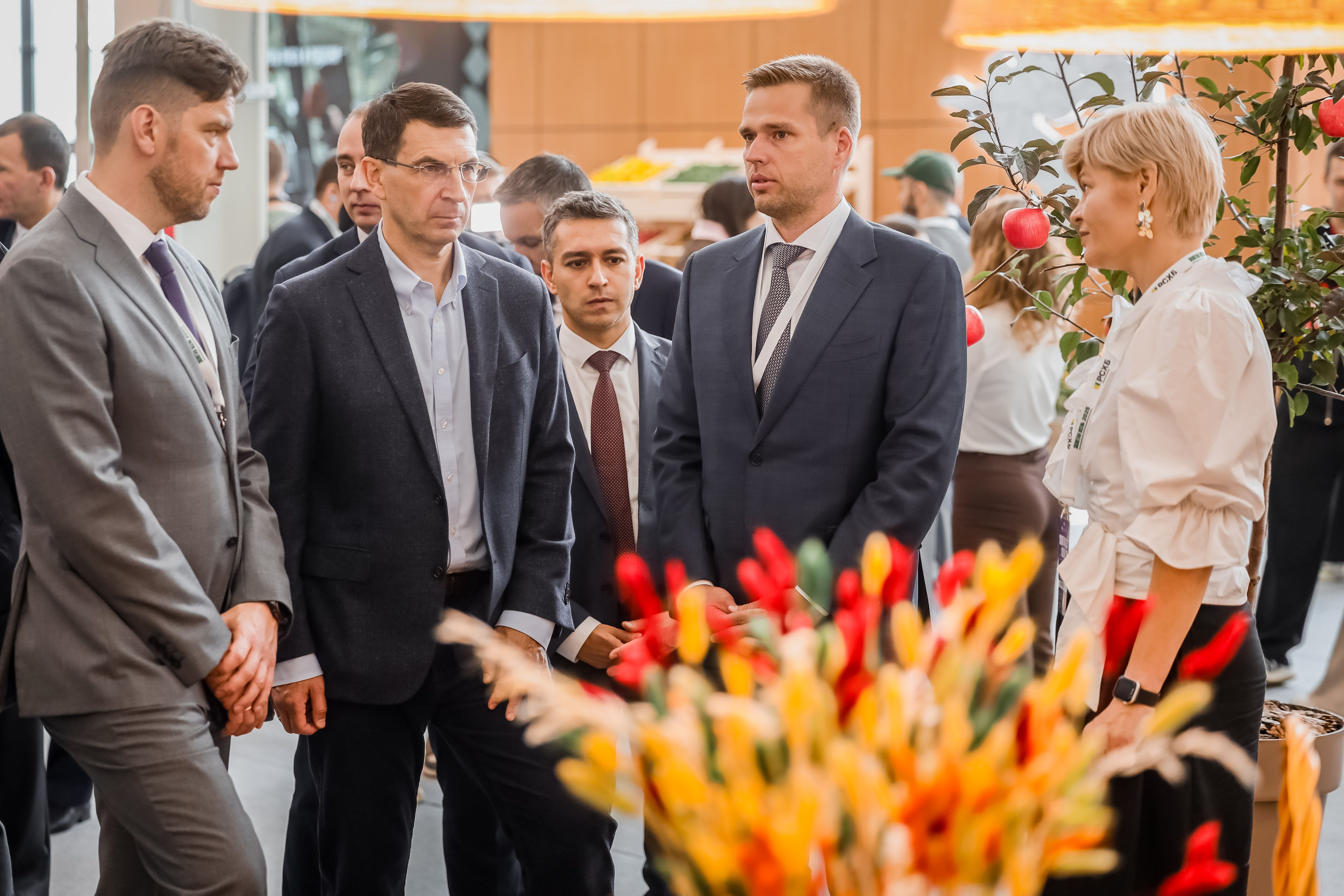 Полпред осмотрел стенд Тамбовской области, где ознакомился с работой облачной платформы по управлению производством «История поля», разработками в сфере садоводства и первой в России безвирусной рассадой бананов мичуринского научного центра «Агропищепром».