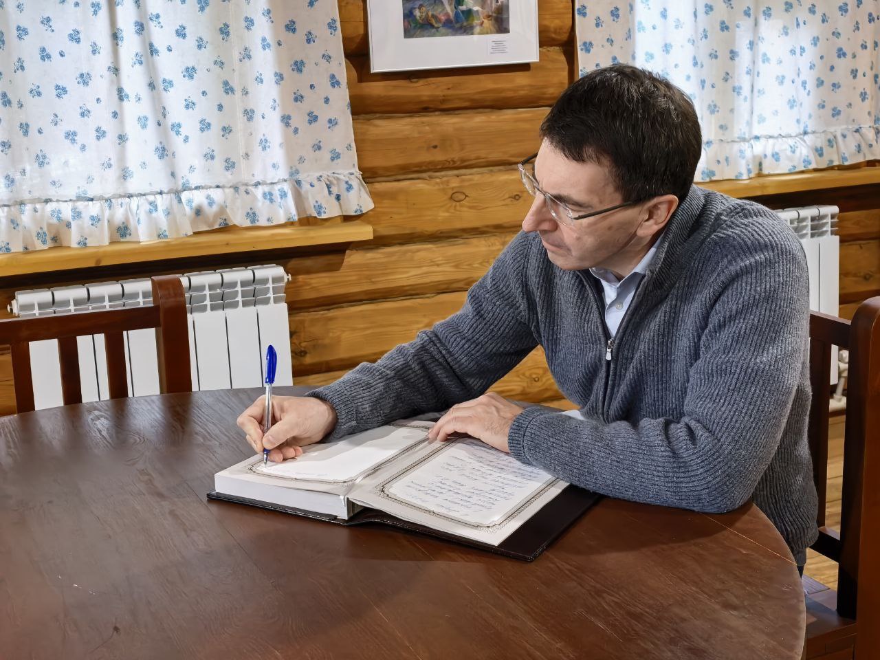 Полпред ознакомился с уникальными экспонатами, архивными документами и личными вещами военачальника. После экскурсии И.Щёголев оставил памятную запись в книге почетных гостей, выразив благодарность коллективу дома-музея за бережное хранение исторического наследия.