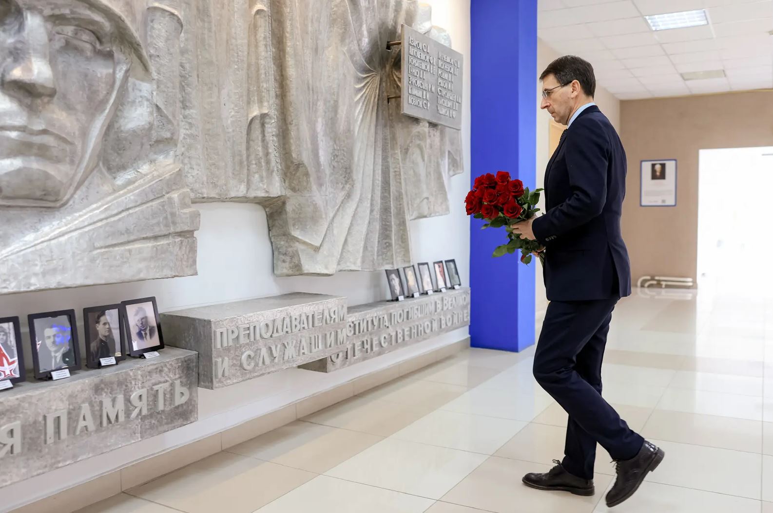 Полпред ознакомился с учебным процессом и возложил цветы к мемориальной стене памяти защитников Отечества на территории центра.